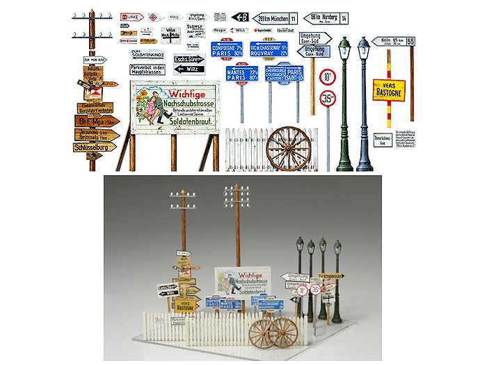 TAMIYA坦克模型 > Tamiya 各式道路標誌,街燈,柵欄ROAD SIGN SET