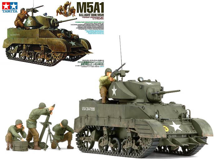 TAMIYA坦克模型 > 美軍輕戰車 M5A1 追擊作戰狀態(含4個人形)