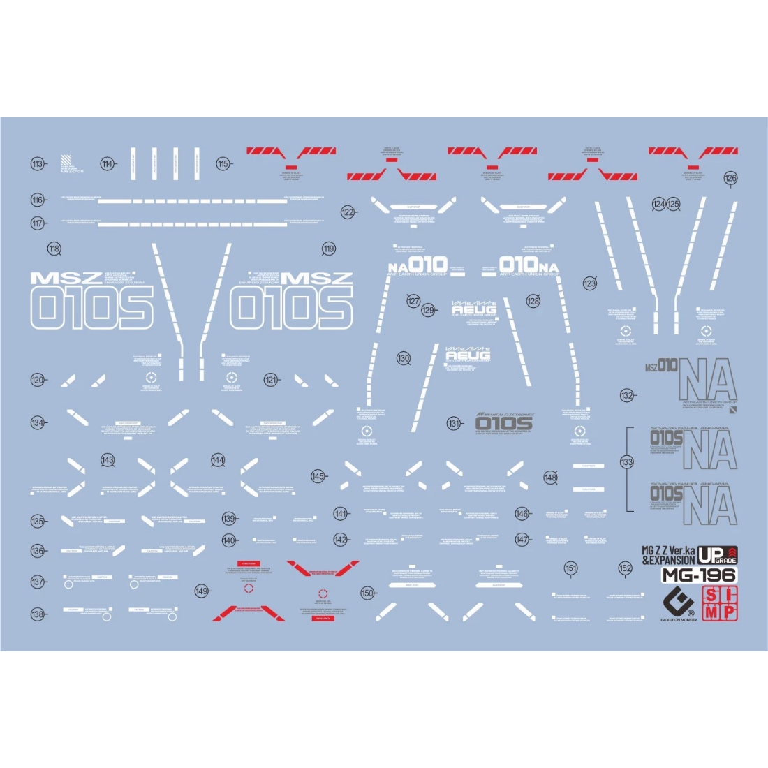 品名:EVO MG 專用水貼 1/100 MSZ-010 ZZ鋼彈 Ver.ka 螢光水貼