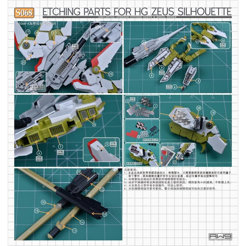 Madworks 模型工具 > MADWORKS 鋼魂AW9 S68 HG 1/144 神王宙斯型外掛裝備 改造蝕刻片 附水貼