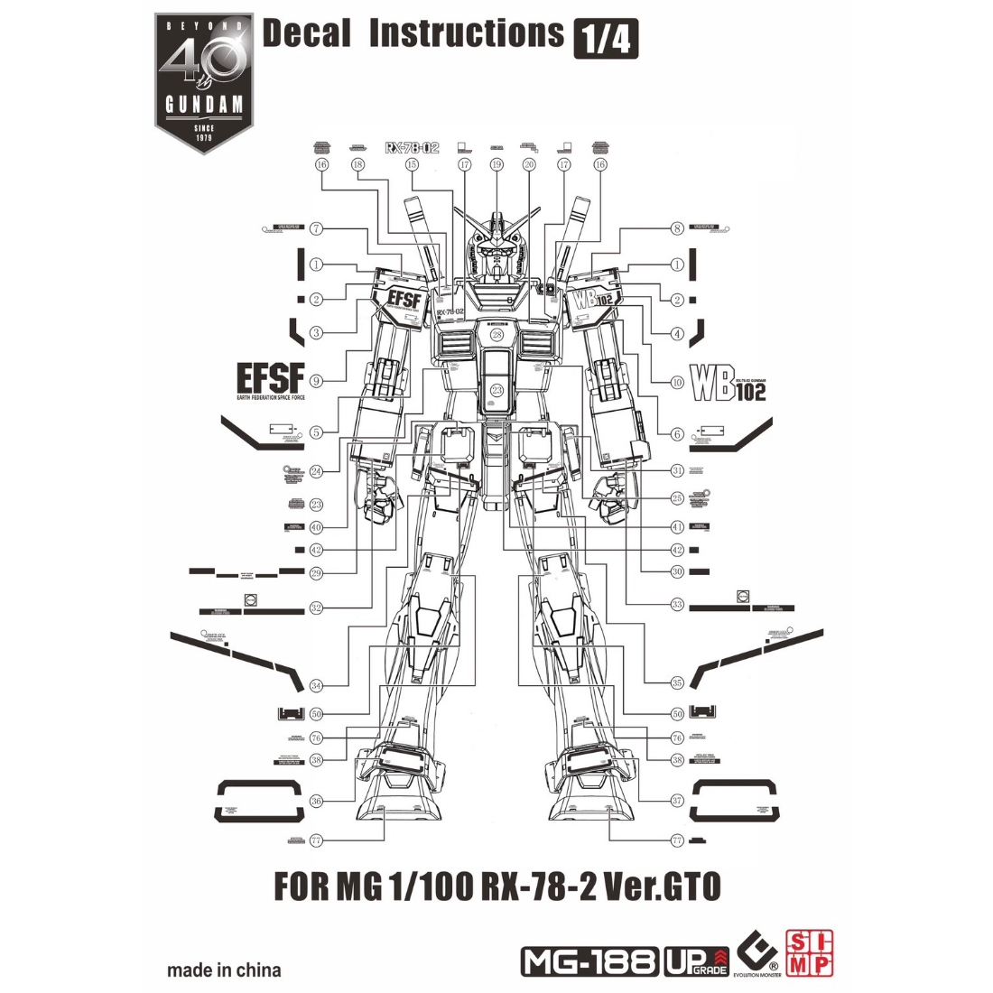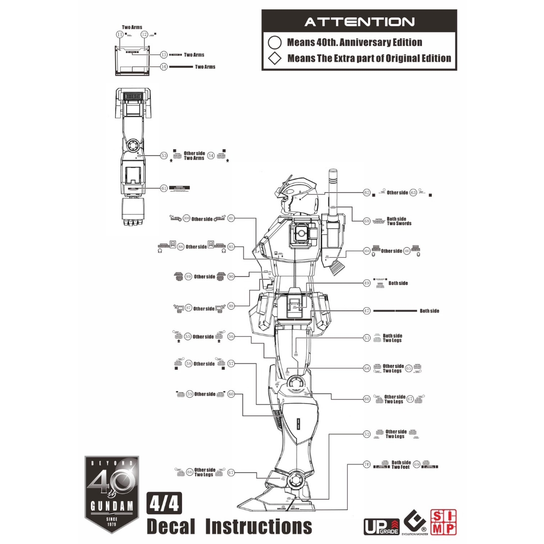 綜合品牌水貼 > EVO MG 專用水貼 1/100 RX-78-2 鋼彈 初鋼 The Origin Ver. 40周年紀念版 螢光水貼