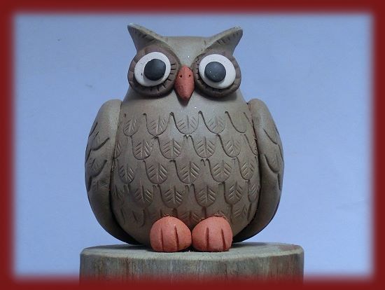 品名: 貓頭鷹手作陶哨-中(白紫砂)